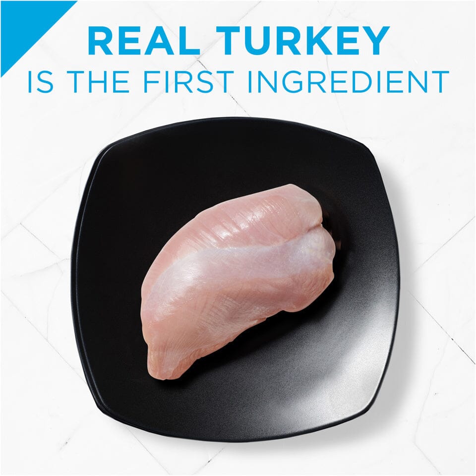 Start your puppy's life out on the right path with the specialized nutrition of Purina Pro Plan FOCUS Grain Free Puppy Classic Turkey Entr茅e wet dog food. Our thoughtfully crafted puppy food is grain-free and made without corn, wheat or soy. We also exclude artificial colors, flavors and ingredients from our recipe, delivering a tasty meal for your puppy. Real turkey is the first ingredient in our Classic Turkey Entr茅e wet food, helping to provide your growing puppy the high-protein support his muscles need during his first stage of life. Our formula helps nourish your puppy's brain and vision development, promoting health and well-being as your puppy grows toward adulthood. This recipe is also rich in omega-6 fatty acids to help promote a healthy coat. Offer your puppy this delicious Classic Turkey Entr茅e recipe at mealtime, and also try out Classic Chicken Entr茅e puppy wet food, giving your pet variety in his diet.