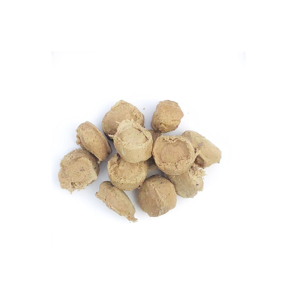 100% natural freeze dried treat made from 4 simple ingredients: Rabbit, duck, broccoli & cranberry. This pup favorite is gently blended then freeze dried to lock in nurtients. They are especially good for older dogs or dogs missing teeth because of their soft slightly crunch texture (Plus - they can be rehydrated to make them even softer)!