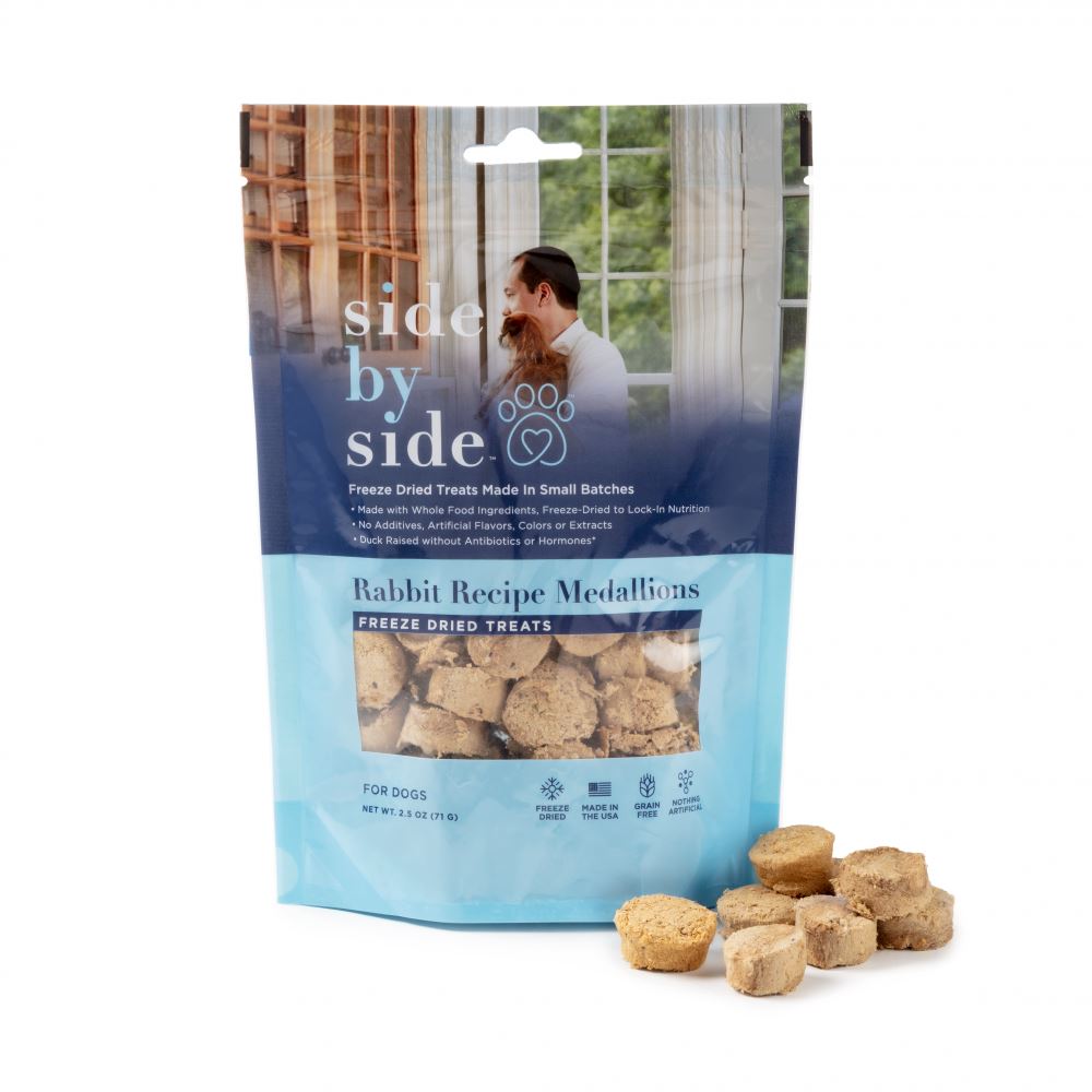 Side By Side Small Batch Cooling Feeze Dried Rabbit Medallion Treats for Dogs & Cats