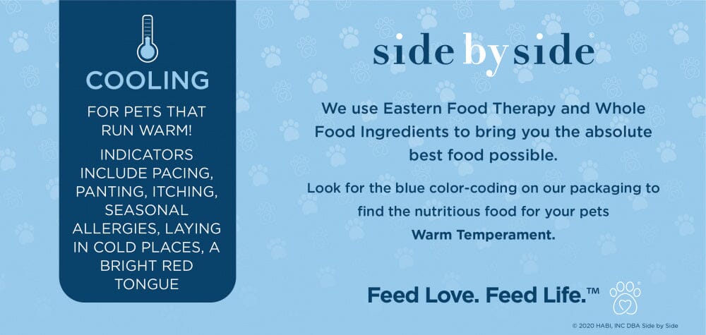 Side by Side has made it their mission to get back to basics, remove all the artificial stuff, say NO to synthetics, fillers and products that are labeled as 鈥榰nfit for human consumption锟? They source human grade ingredients and fill your dog's bowl with the same high quality ingredients that we fill our human plates with. Made in the USA In Small Batches from Whole Food Ingredients.